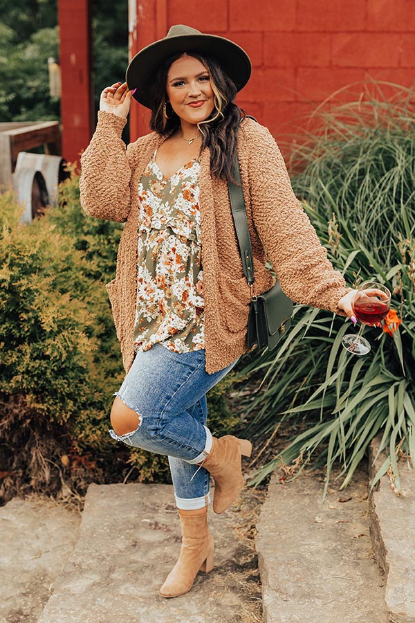 All Spice Popcorn Knit Cardigan In Mocha Curves