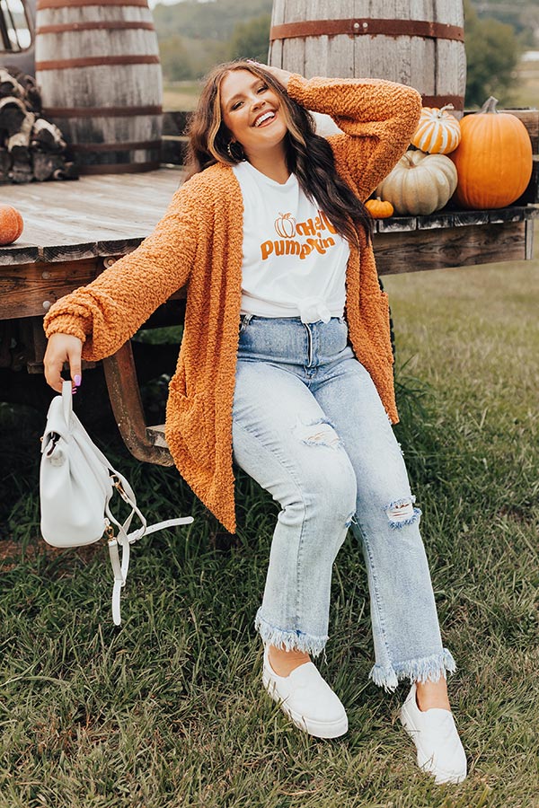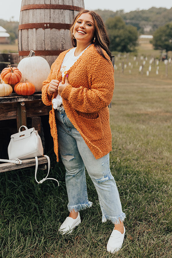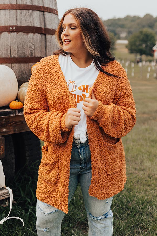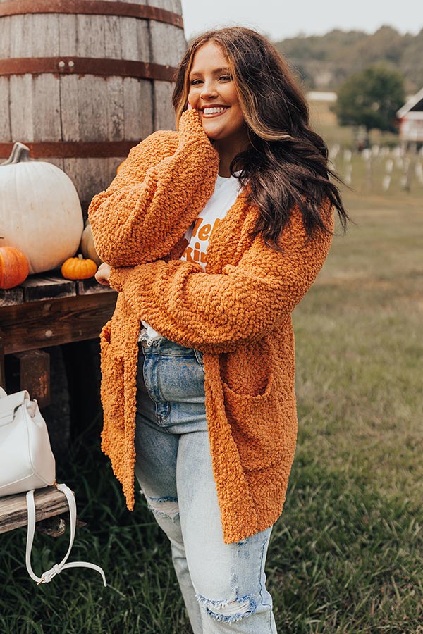 All Spice Popcorn Knit Cardigan In Pumpkin Curves