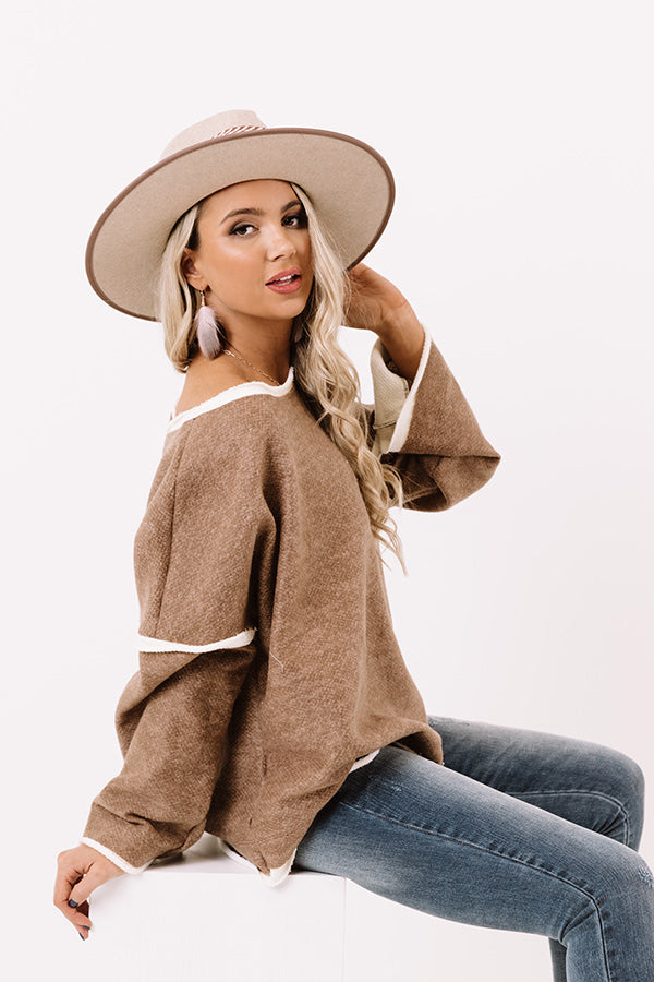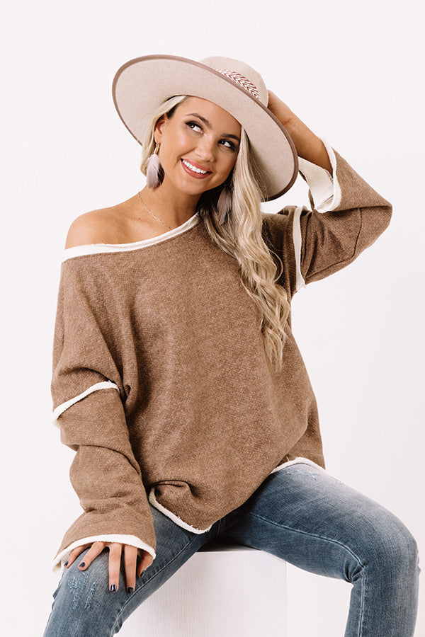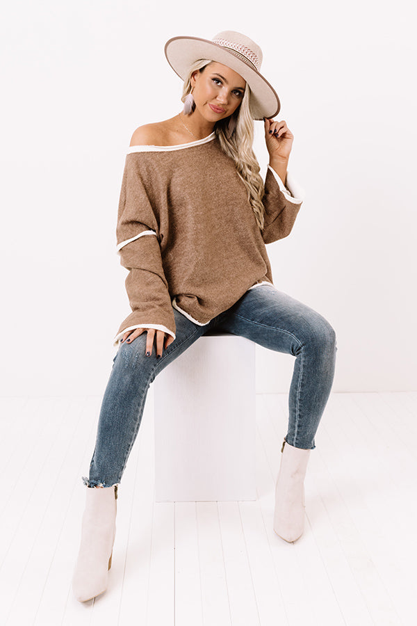Believe us when we tell you this adorable brown sweater is all that you need for the perfect OOTD with its soft lightweight tight knit material, exposed white accent seams, a wide neckline that can be worn off one shoulder, long oversized bell sleeves, and an ultra slouched silhouette that falls into a straight hemline! Measurements