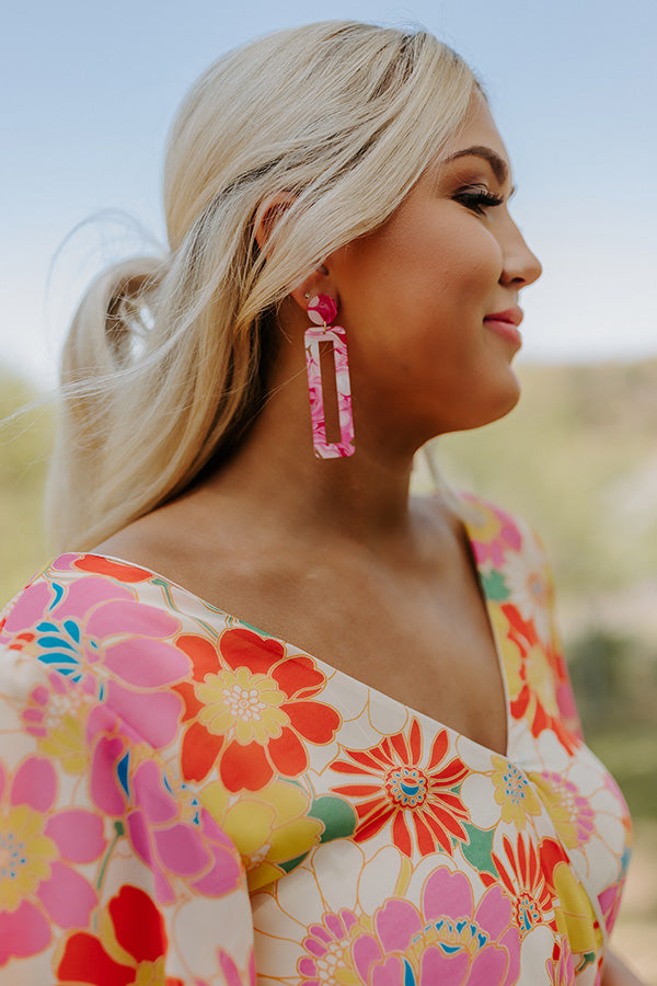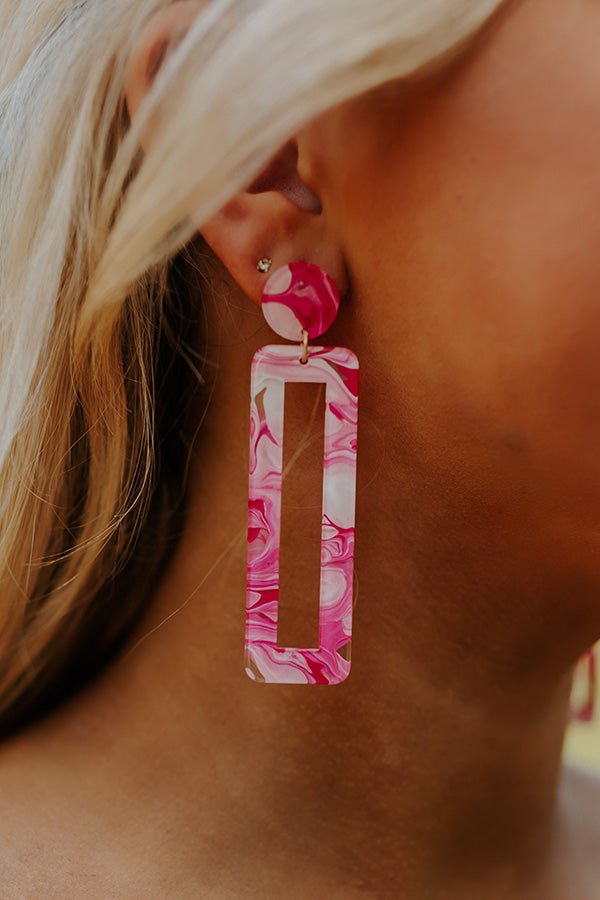 Believe us when we say these earrings will be all the buzz with their marbled hot pink resin circles studs and dangling elongated rectangle hoops!