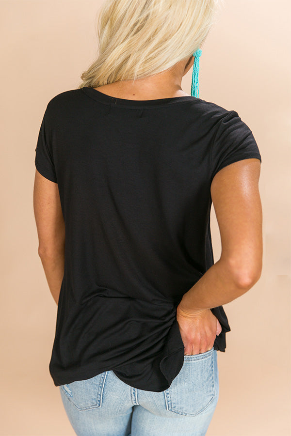 Those new high waisted shorts that you ordered will look extra fabulous with the "All The Goals Shift Tee!" This ultra soft tee has short sleeves, a rounded neckline & a sassy surplice style bottom hem.