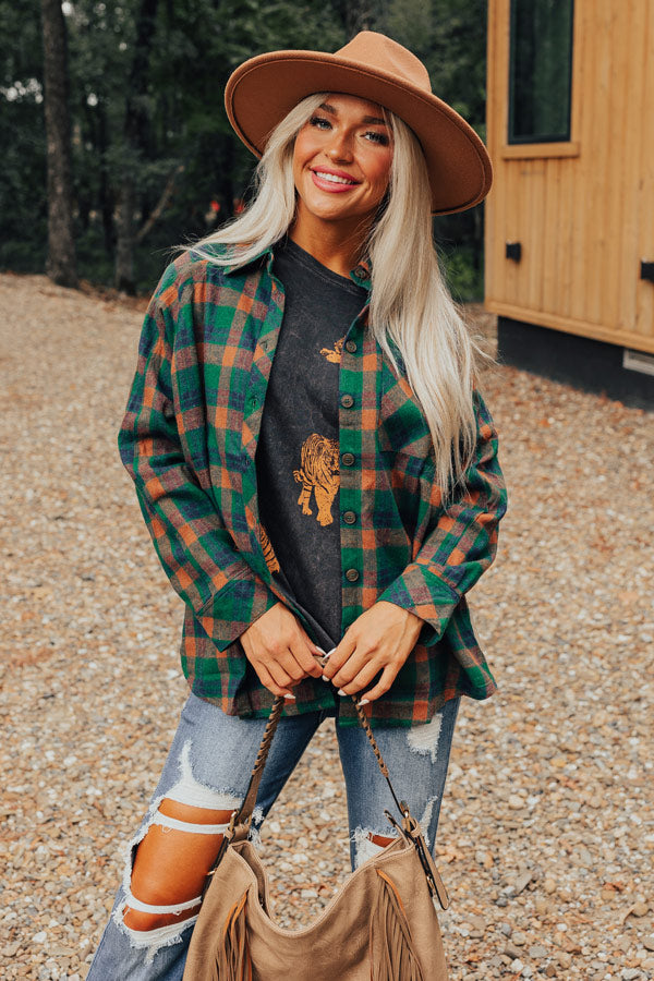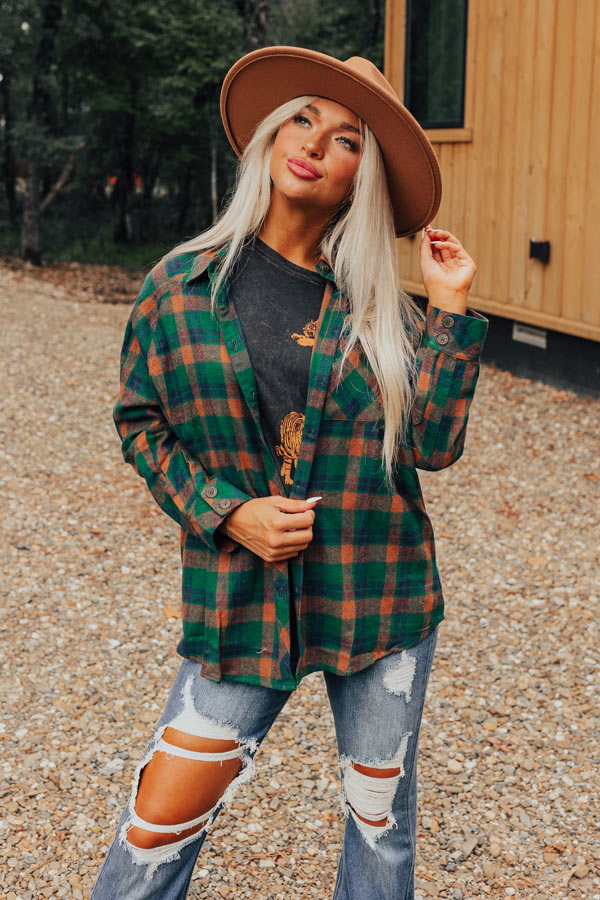 - Its colorful leaves and fall plaids please with this trendy flannel!