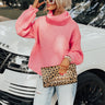 When in doubt...wear pink! Our darling 'Alpine Promise' sweater features knit material with horizontal ribbed texturing, an oversized rolled turtle neckline, long loose sleeves, a wrap back, and a slouched silhouette that ends in a straight hemline!