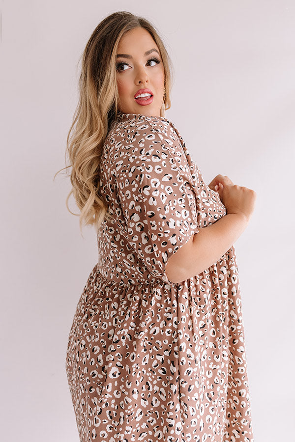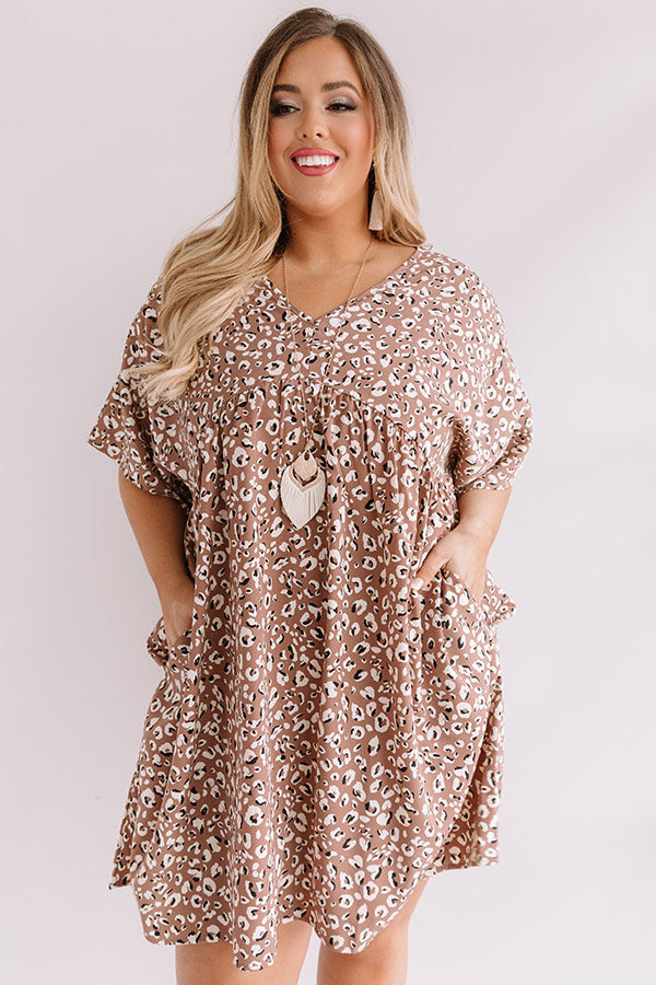 Alps And Kisses Leopard Babydoll Dress In Taupe Curves