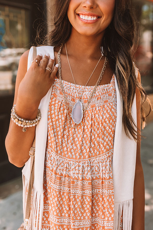 Make a statement with our pretty gold 'Always Flirting' necklace featuring three layered pieces: a small link chain, a paperclip link chain, and a dainty chain with a large abstract shaped natural stone pendant!