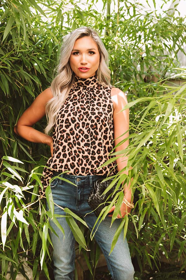 Take a walk on the wild side in our adorable "Always Manhattan" shift top featuring lightweight material patterned with a bold black and brown leopard print, a high collared neckline with a halter tie closure, wide 3-inch sleeveless shoulder straps, and a relaxed silhouette that falls into a rounded hemline! We have styled this beauty with some frayed dark wash skinnies and a black platform heel and faux leather clutch, but you can also wear it layered under a cropped jean jacket with our black "Lynda Distressed Skirt," "The Alice Faux Suede Thigh High Boot in Brown," and our "Merlot Nights Hat in Black!" Measurements