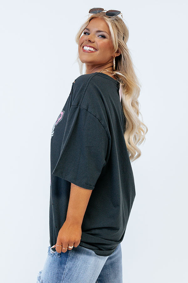 America Graphic Distressed Boyfriend Tee in Black Curves