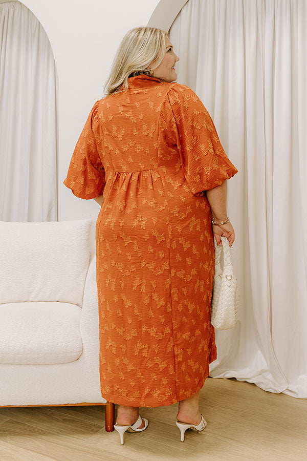 Apple Cider Sippin Jacquard Midi Dress in Rust Curves