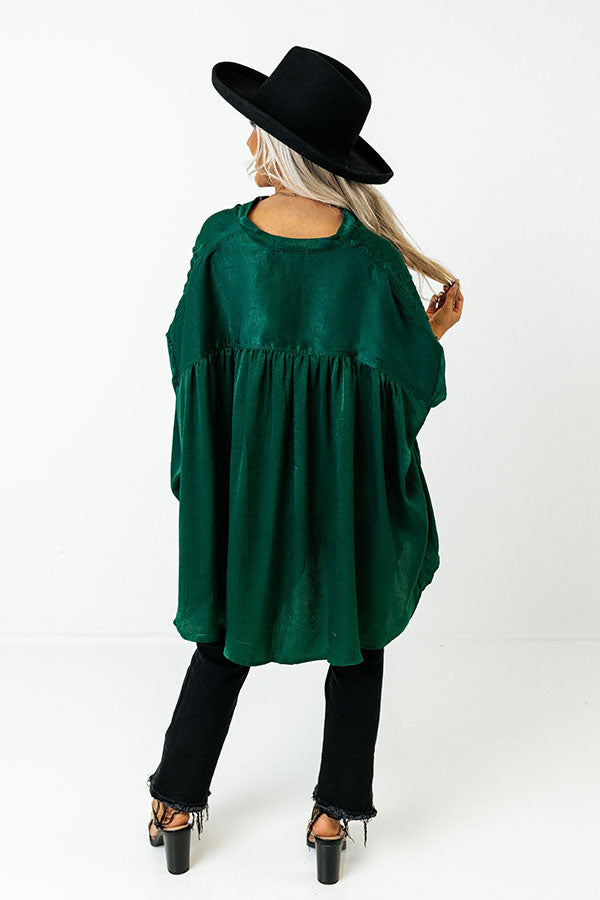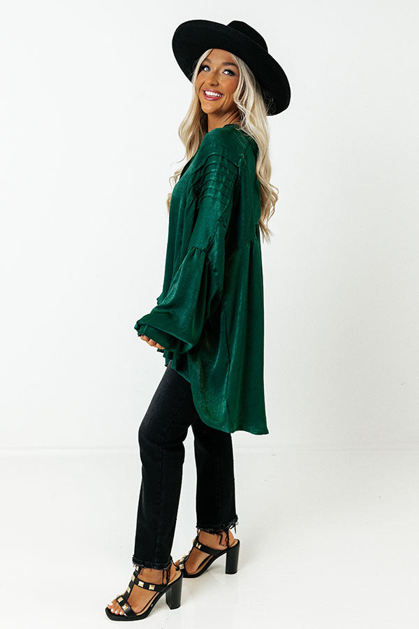 Apple Cider Sips Satin Shift Top In Hunter Green