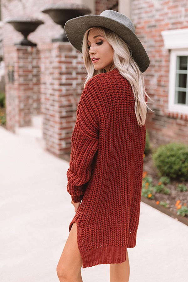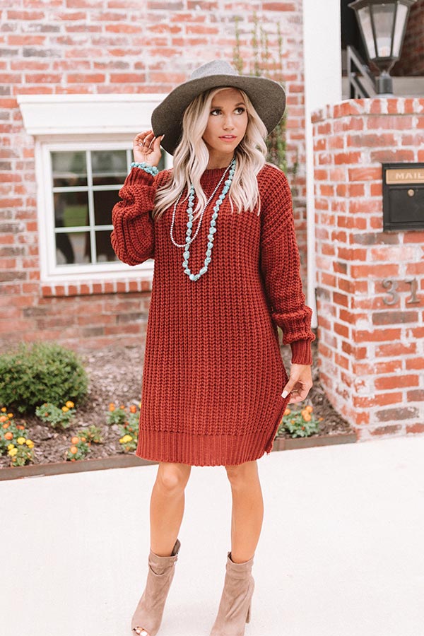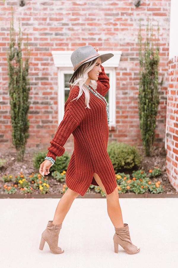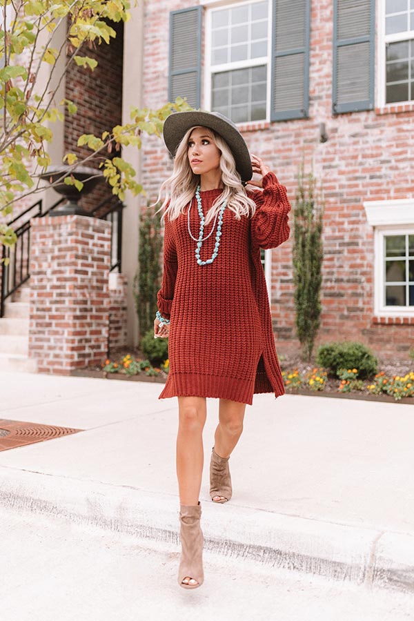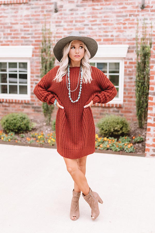 If you are in "knit" for the long haul, then the "Apple Cider Crushing" tunic sweater is perfect for you! It features a wide loose knit texture, a high rounded neckline, long loose sleeves with fitted cuffs, and a relaxed straight fit silhouette that falls into a straight ribbed hemline with side slits! Depending on height, this piece can be styled as a dress with a statement necklace and a neutral bootie and faux suede hat, or you can wear it as a sweater with some distressed ankle skinnies and patterned accessories like "The Britton Snake Print Bootie" and our "Express Yourself Faux Leather Purse in Snake Print!" Measurements