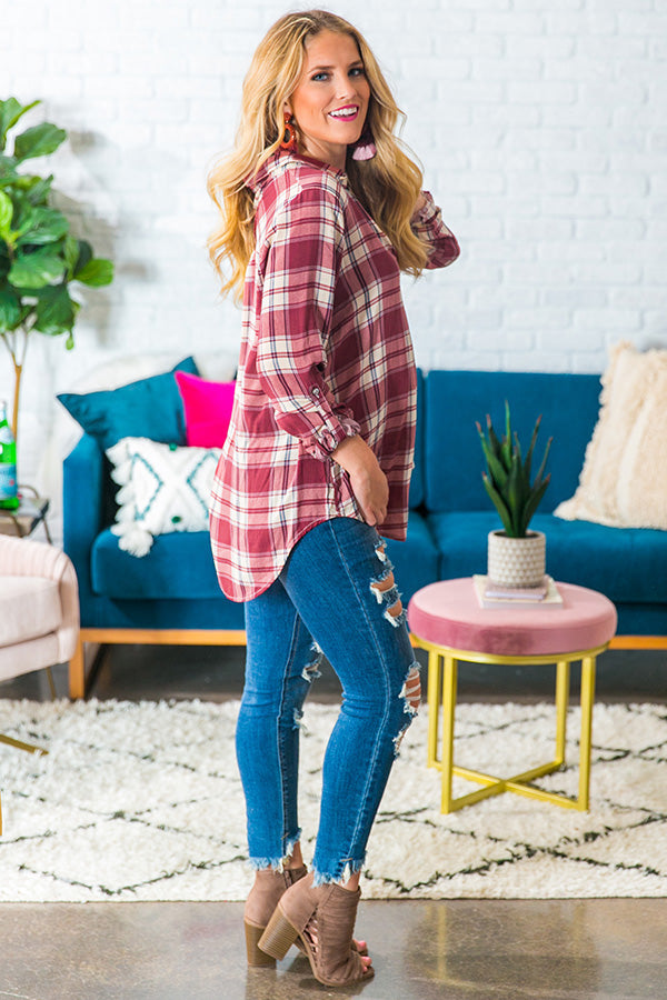 Nothing screams "apple orchid outfit" quite like this lightweight plaid top! Grab a basket and your beau, and head to the nearest apple orchid in style. The "Apple Picking Pretty Plaid Top" has a collared v-cut neckline, long roll-tab sleeves, and a lightweight rayon bodice that is perfect for an afternoon of apple picking... or strolling through your local farmers market. Complete your look with jeans and a casual bootie, for a great transitional look that is ready to take on all of your afternoon adventures!