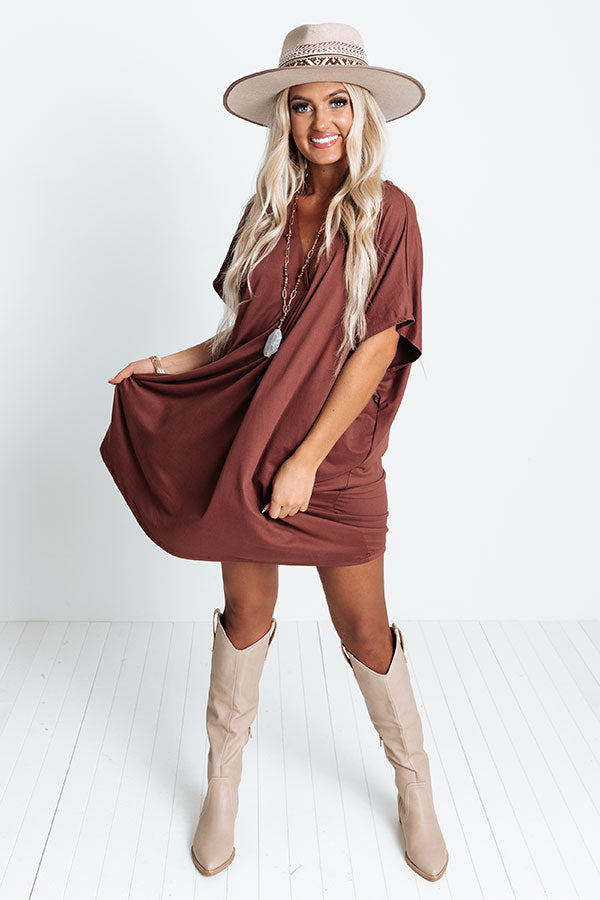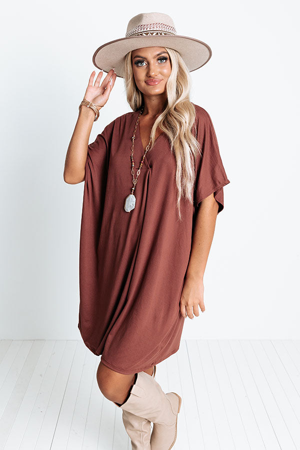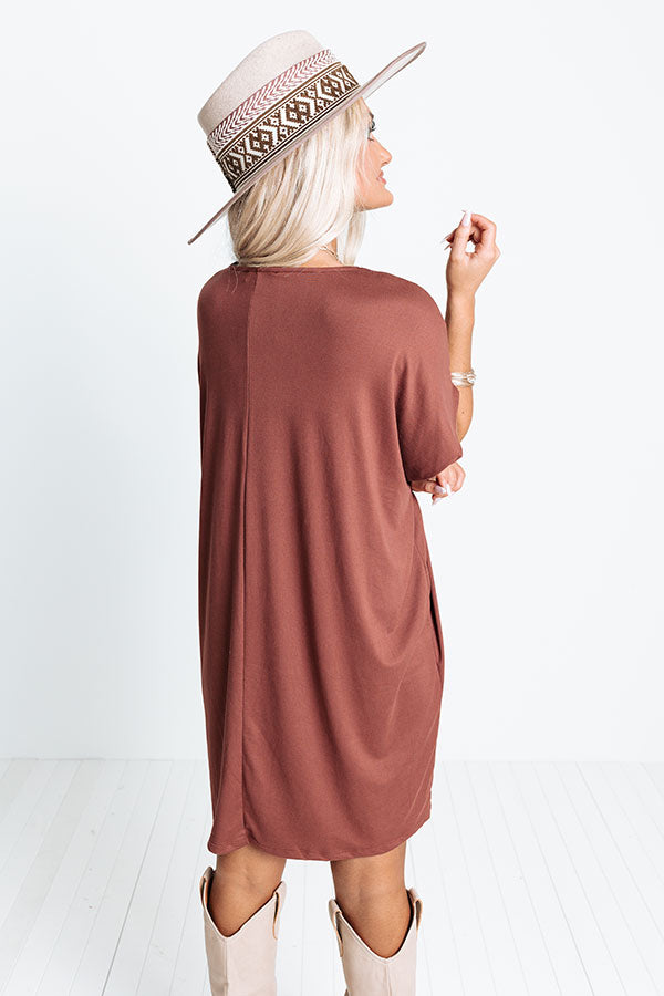 Keep it basic in our versatile dusty merlot colored 'Apple Trail Shift Dress' featuring soft and stretch lightweight material, a v-cut neckline, short sleeves, and a relaxed but flattering silhouette that falls into a straight mid-thigh length hemline! Measurements
