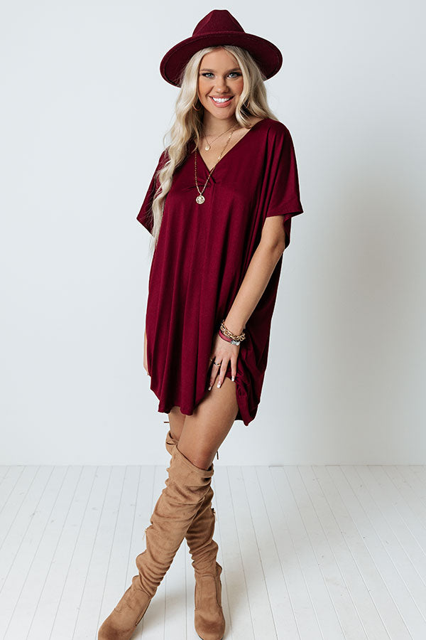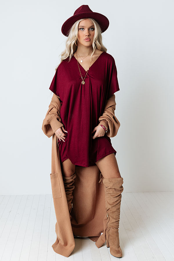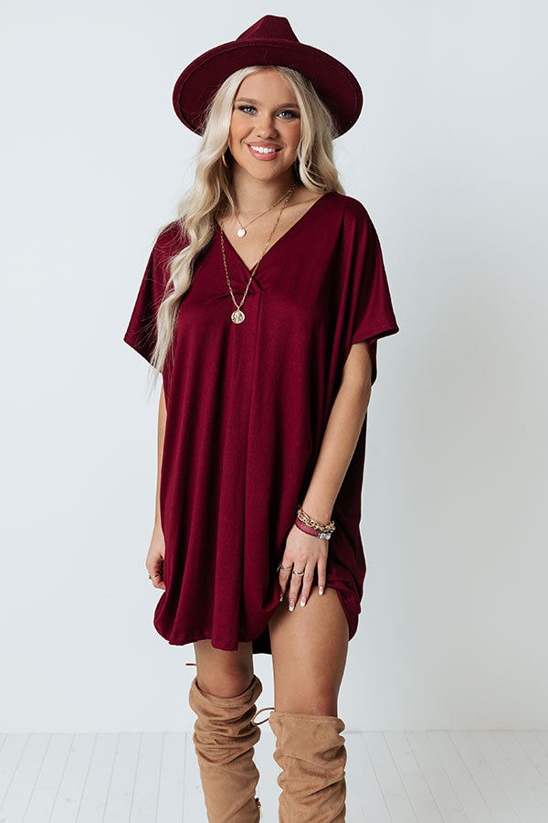 Keep it basic in our versatile wine colored 'Apple Trail Shift Dress' featuring soft and stretch lightweight material, a v-cut neckline, short sleeves, and a relaxed but flattering silhouette that falls into a straight mid-thigh length hemline!