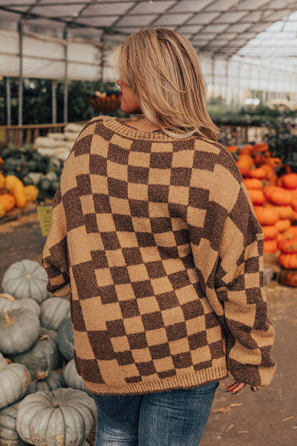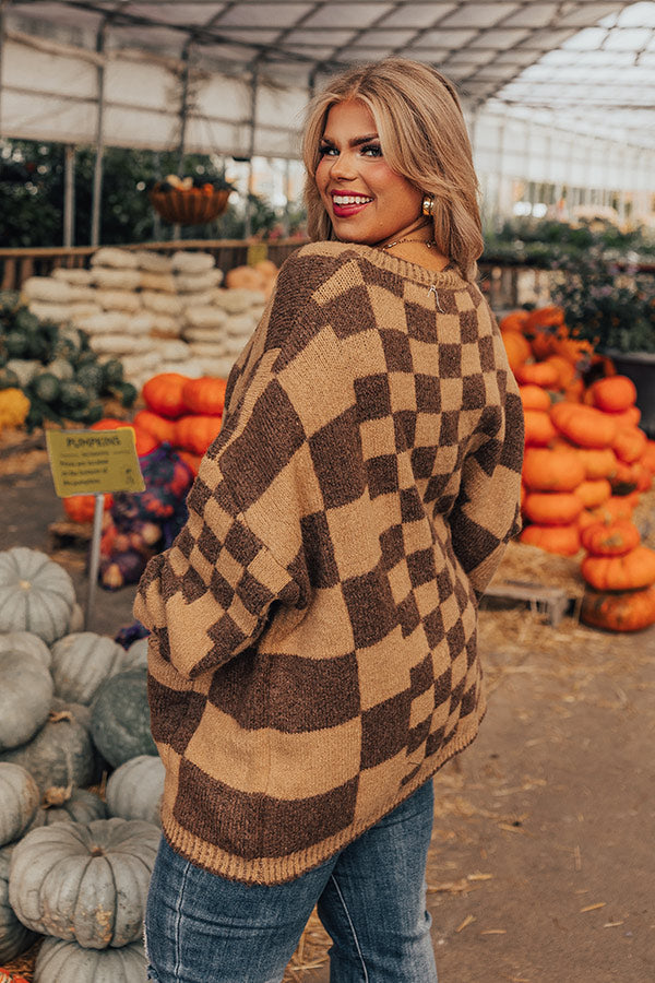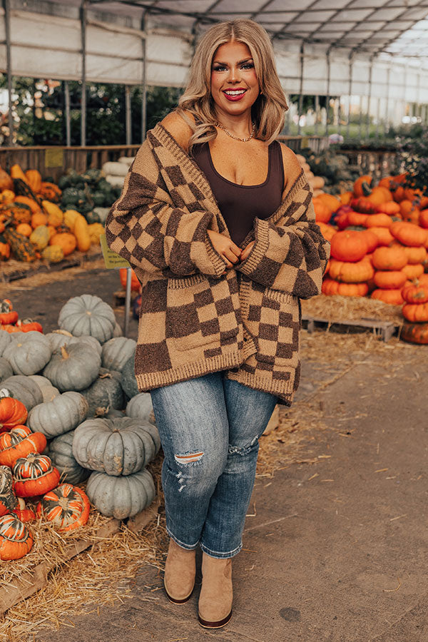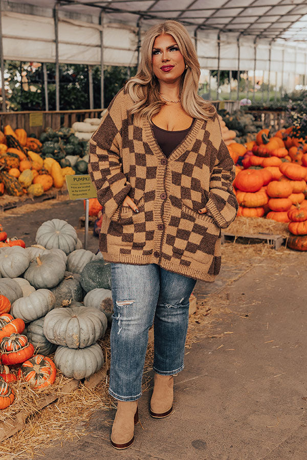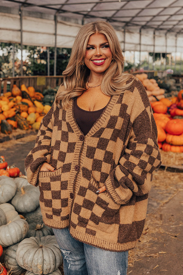 Around The Block Checkered Cardigan in Iced Latte Curves