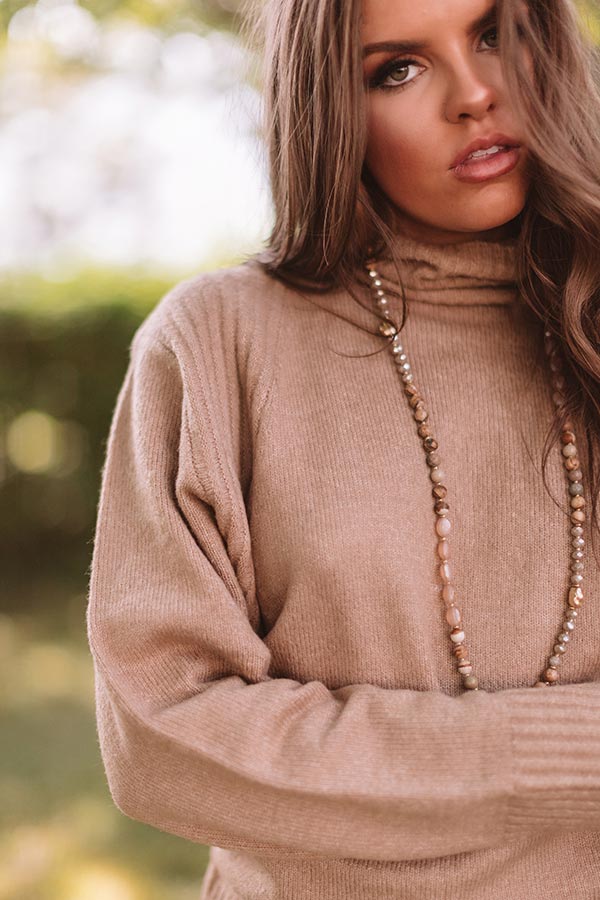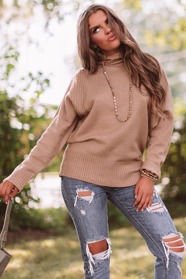 When hanging "around the bonfire" there is no better piece to be wearing than this mocha shift sweater featuring ultra soft material, a high turtle neckline, long loose sleeves with fitted cuffs, and a straight fit bodice that falls into a straight ribbed hemline! You can style this cozy fall piece with some distressed ankle skinnies, dainty statement jewelry, and a grey bootie and tote, or you can pair it with a black skirt or black flares, "The Seraphina Faux Leather Wedge in Taupe," and our "Plans In Paris Wool Hat in Taupe!" Measurements