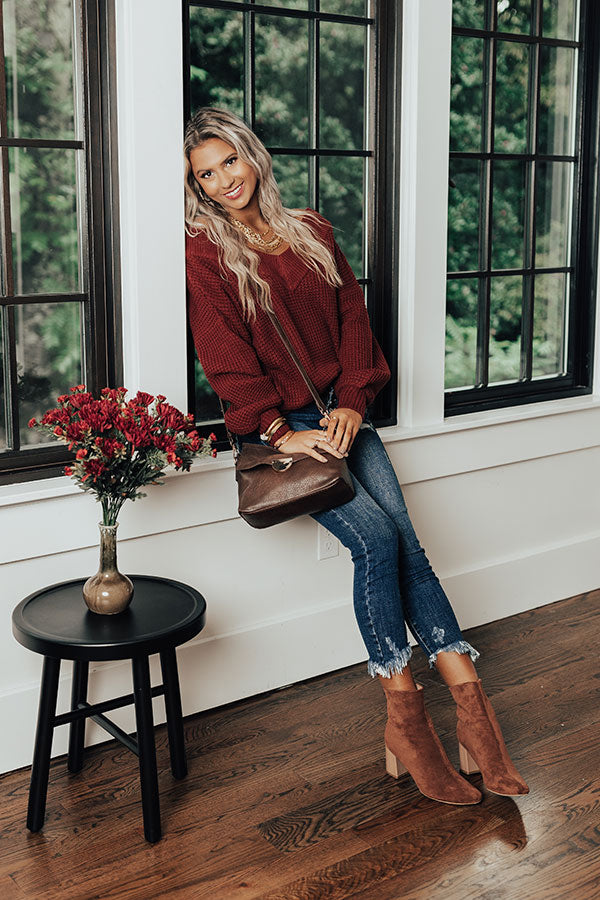Chilly days have nothing on you in our aurora red colored 'Aspen All Over Knit Sweater' which features a cozy knit material, a wide v-neckline that can easily be pulled off the shoulder, and relaxed balloon sleeves that gather at the cuff. We are lowkey crushing on the ribbed detail on the neck, hem, and cuffs of this snuggly sweater. Measurements
