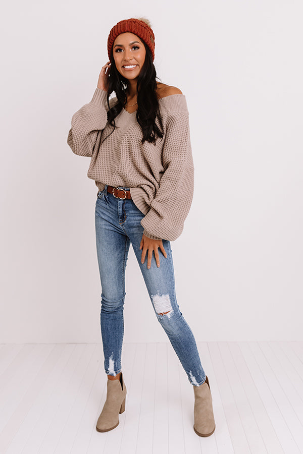 Chilly days have nothing on you in our 'Aspen All Over Knit Sweater' which features a cozy knit material, a wide v-neckline that can easily be pulled off the shoulder, and relaxed balloon sleeves that gather at the cuff. We are lowkey crushing on the ribbed detail on the neck, hem, and cuffs of this snuggly sweater. Measurements