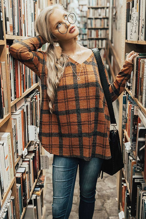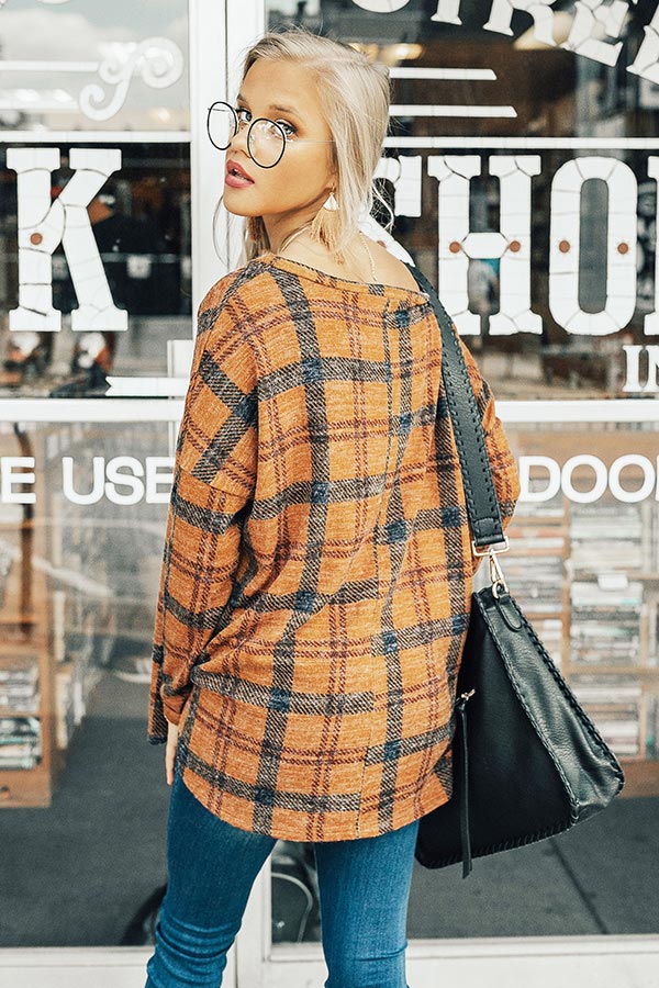 Get ready to get cozy by the fire in this cabin favorite! This plaid knit shift top has a v-cut neckline, long sleeves and a scooped hemline. This Fall-friendly top is the perfect mix of lightweight and cozy, and is great for layering or wearing solo.