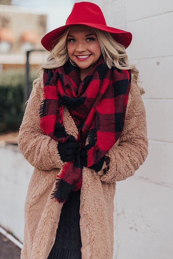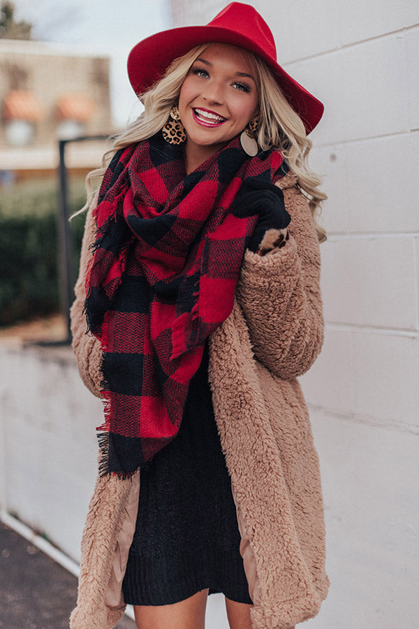 Add an extra layer of warmth to any OOTD with our "Aspen Cuddles" blanket scarf featuring soft lightweight material with a black and red buffalo check pattern and fringed edge detailing!