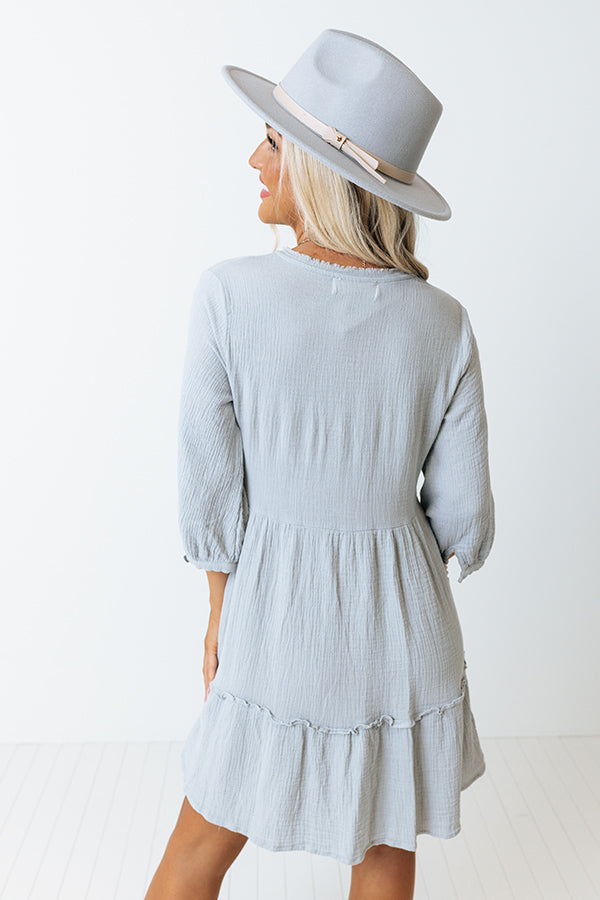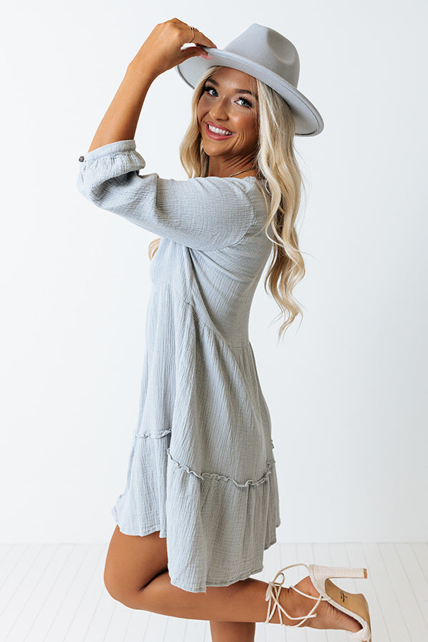 Slay all day in our cute airy blue 'Austin City Sweetness Shift Dress' featuring lightweight material with textured detailing, a button down front with a v-cut neckline, loose 3/4-length sleeves, and a relaxed silhouette that falls into a straight mid-thigh length hemline! on products