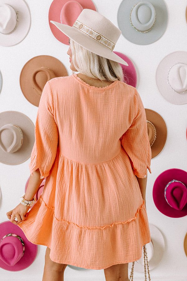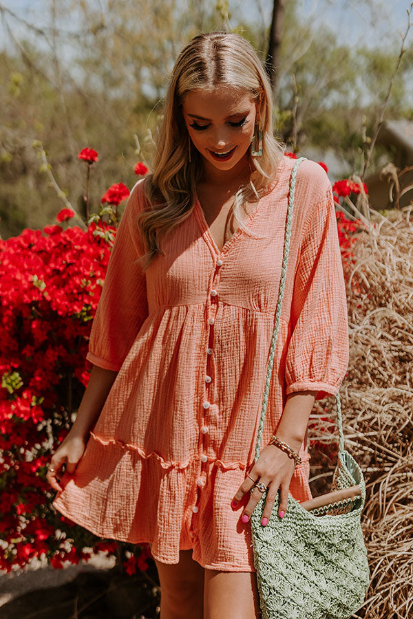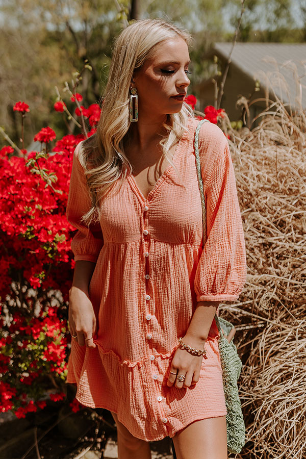 Slay all day in our cute neon orange 'Austin City Sweetness Shift Dress' featuring lightweight material with textured detailing, a button down front with a v-cut neckline, loose 3/4-length sleeves, and a relaxed silhouette that falls into a straight mid-thigh length hemline! on products