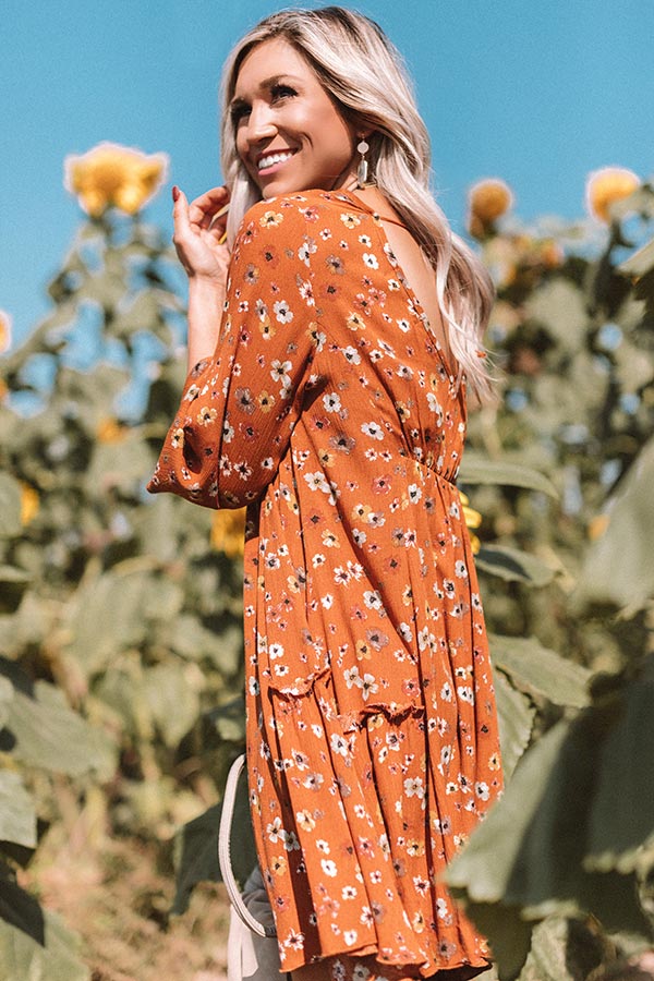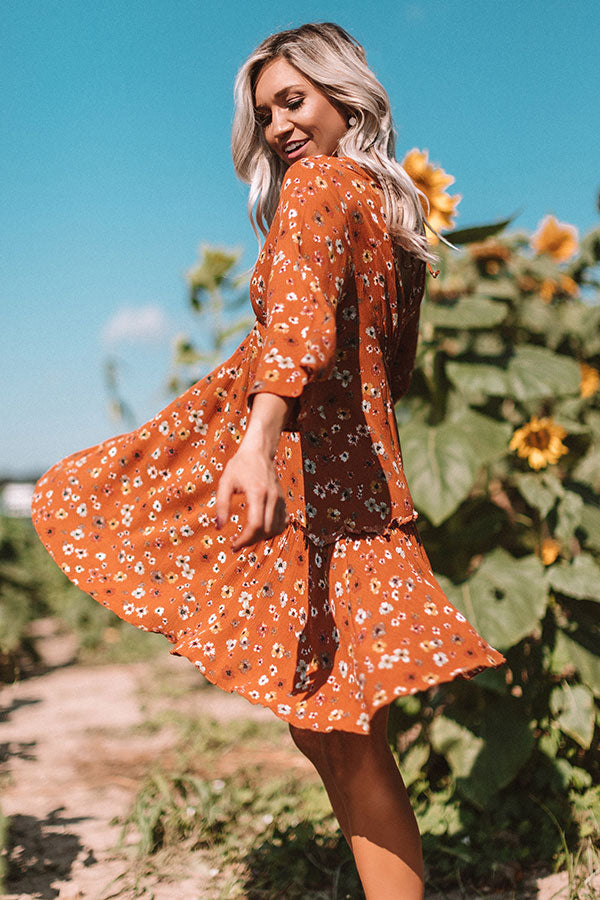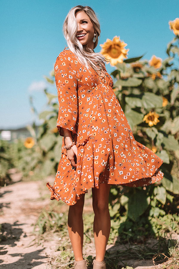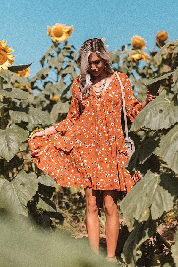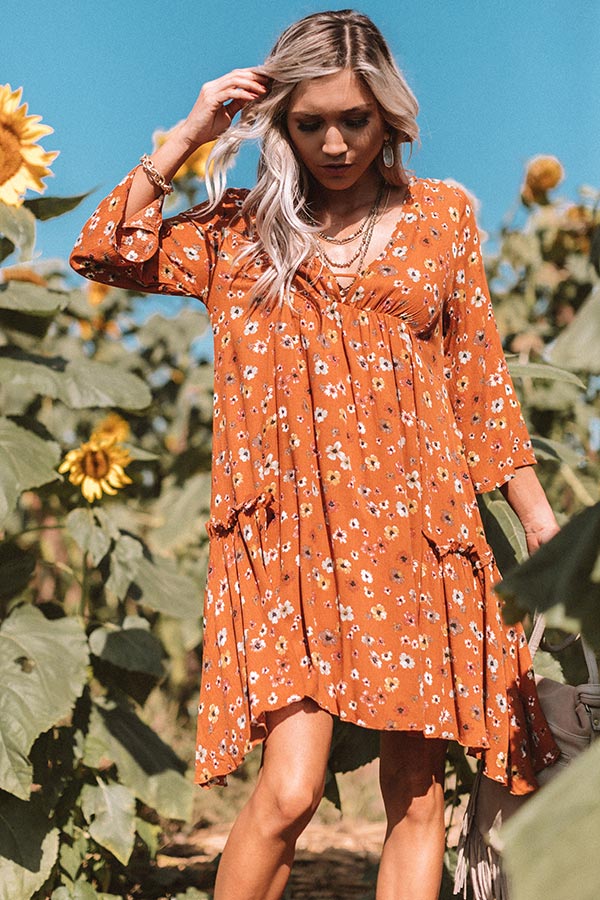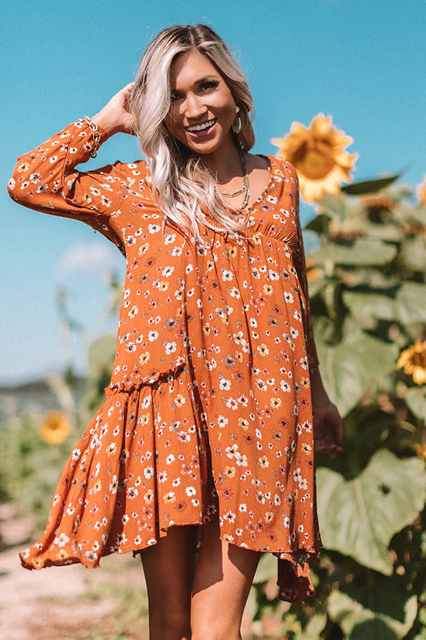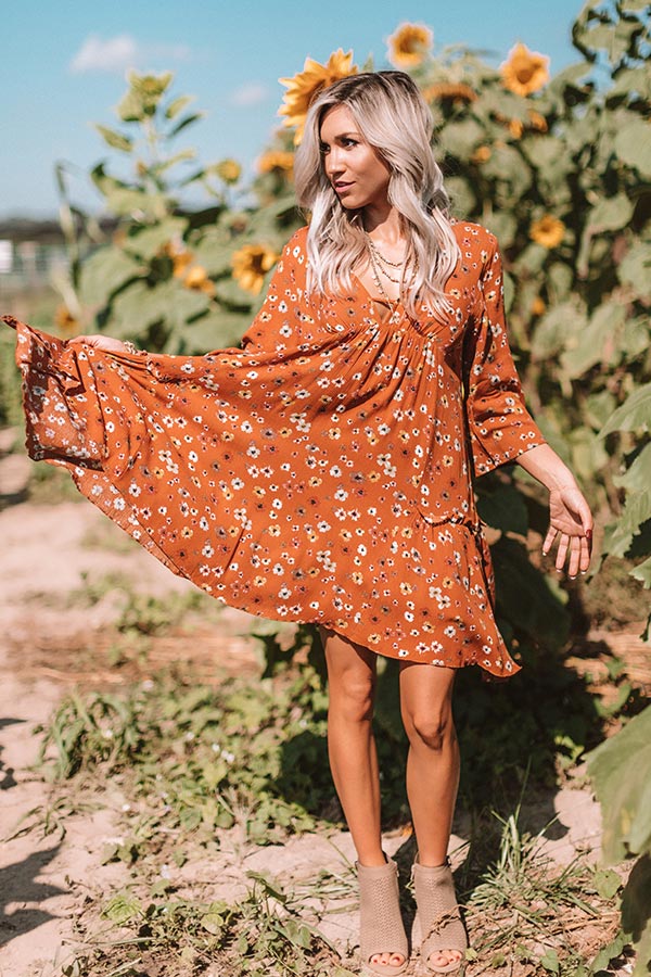 Autumn And Apple Cider Floral Shift Dress In Rust