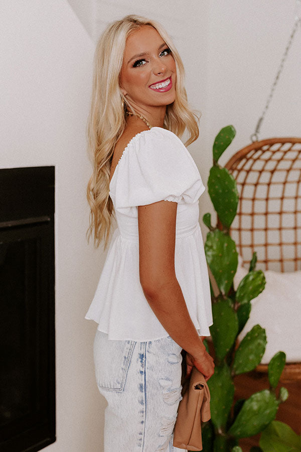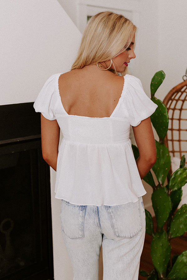 Get ready for summer date night in our gorgeous white 'Awaiting Romance' top featuring lightweight material, a flirty v-notched neckline, short puff sleeves, and a flattering babydoll silhouette that falls into a straight hemline!