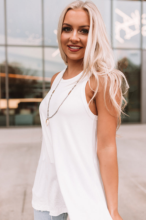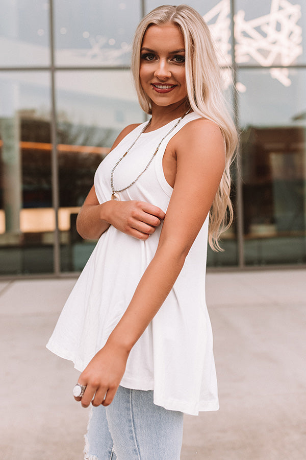 With good basics, you'll have endless options, so add our white "Back To Chat Shift Tank" to your cart and upgrade your wardrobe! It features soft lightweight material, a scooped neckline, wide 3-inch shoulder straps, and a relaxed silhouette that falls into a straight hemline! We have styled this cutie layered under a snake print cardigan with some distressed light wash skinnies and neutral wedges, but you can also wear it solo with some frayed denim shorts, "The Kamryn Stripe Sandal in Primrose Yellow," and our "Parisian Travels Crossbody in Primrose Yellow!" Measurements