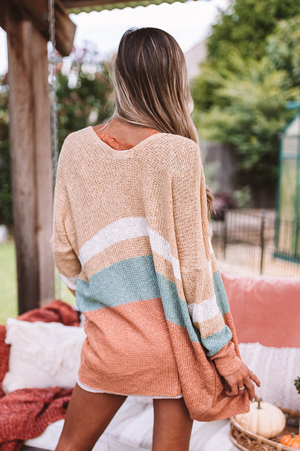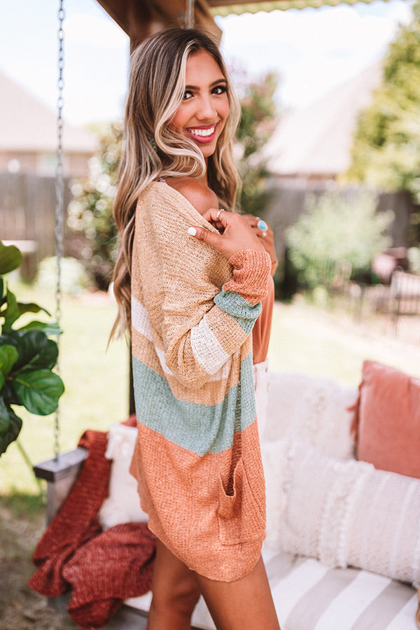 Cozy up for fall in our adorable "Backroads And Brunch" cardigan featuring ultra soft lightweight tight knit material patterned with horizontal color block accent stripes, long loose sleeves, low pockets, and a relaxed open front silhouette that falls into a straight hemline! You can layer this versatile piece with just about anything from a basic tank to a sweater, jeans to dresses, wedges to sandals, clutches to totes, and hats to earrings for a variety of cold weather ready looks! Measurements