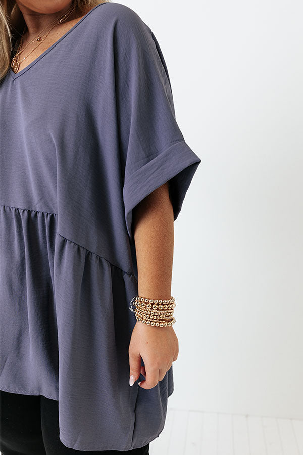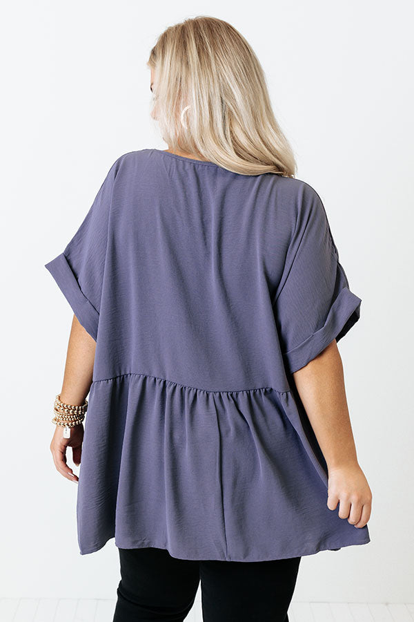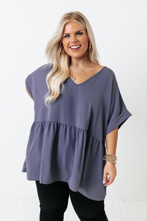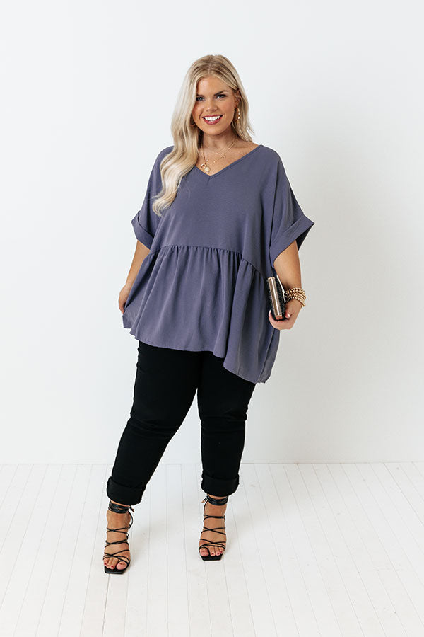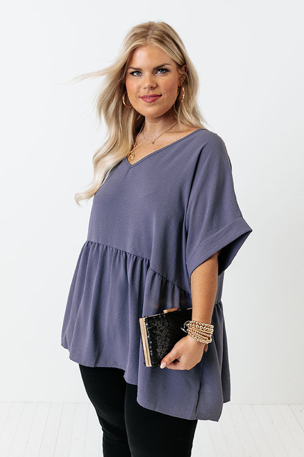 Backseat Sips Babydoll Top In Dark Periwinkle Curves