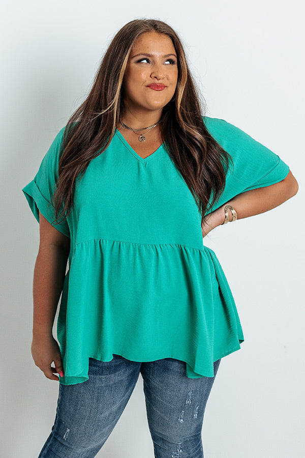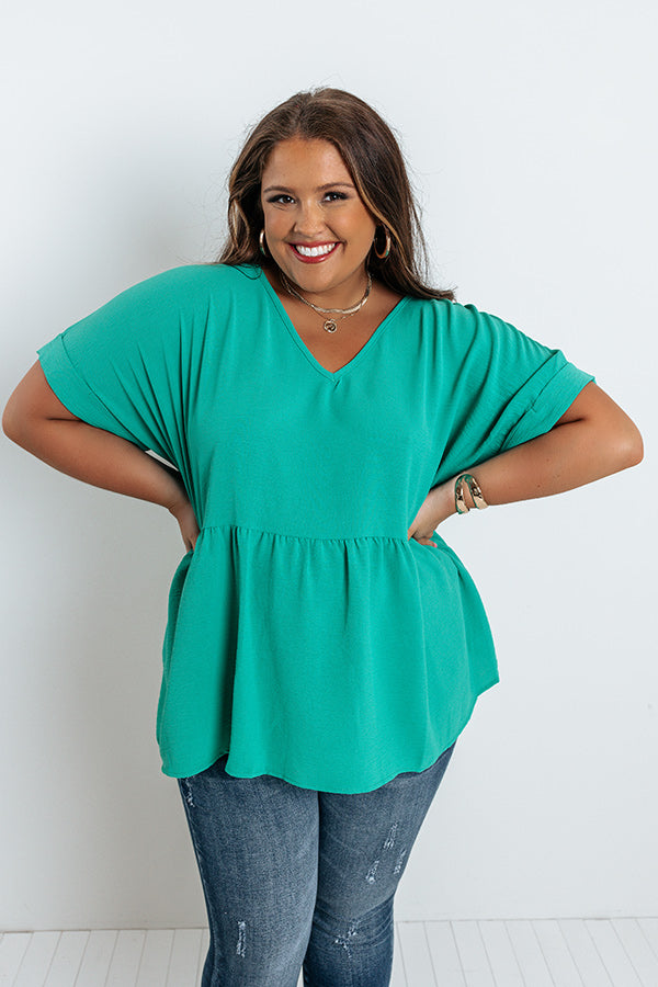 Backseat Sips Babydoll Top In Kelly Green Curves