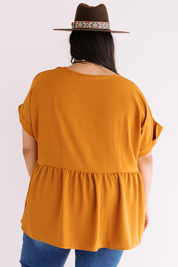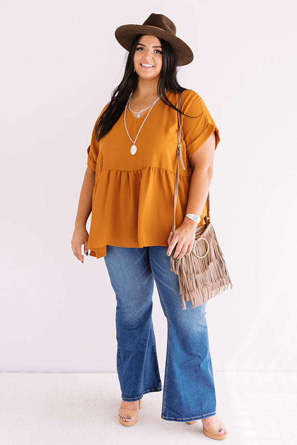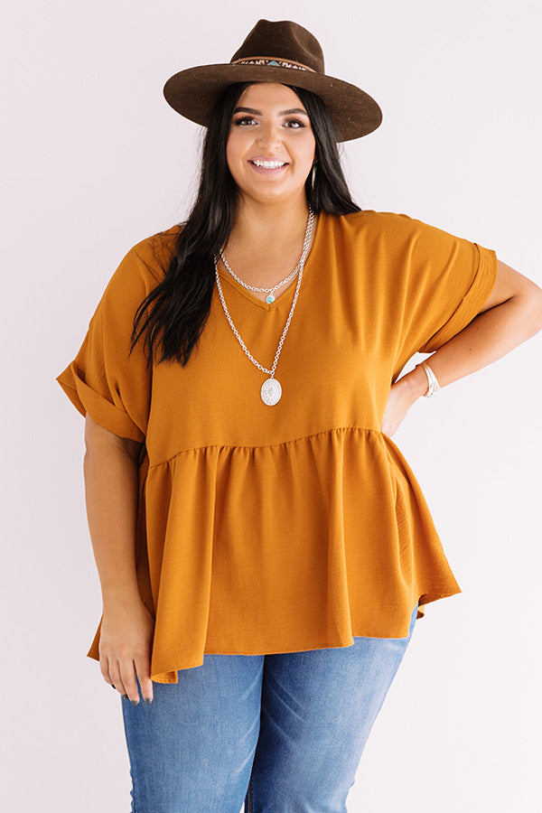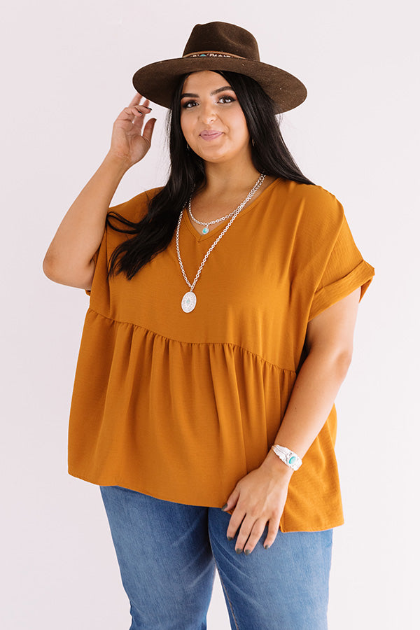 Backseat Sips Babydoll Top In Pumpkin Curves