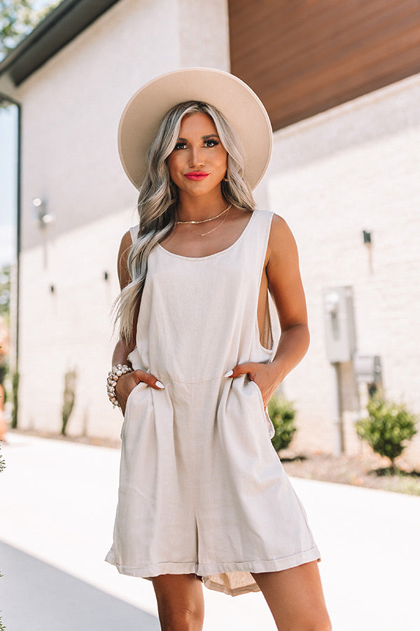 Backyard Luxury Linen Romper In Stone