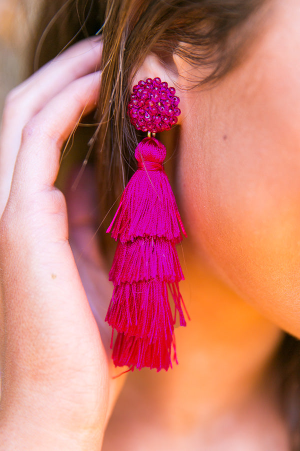 Bahama Beach Days Tassel Earrings In Sangria