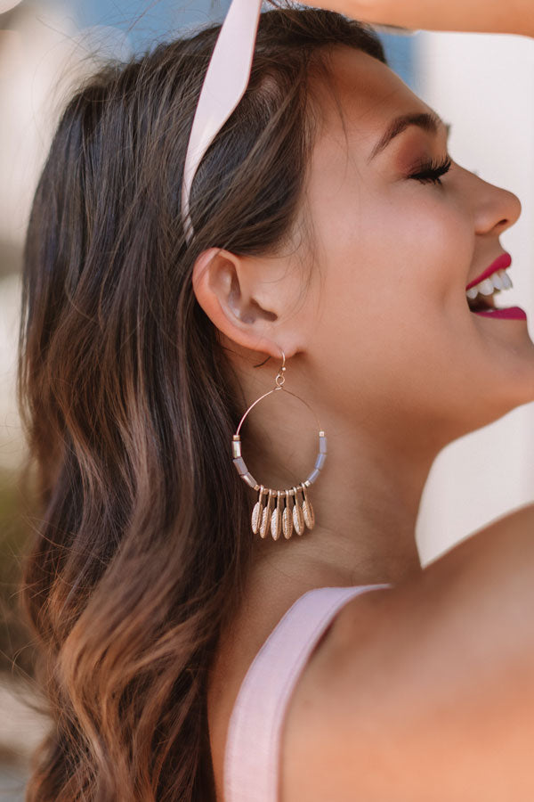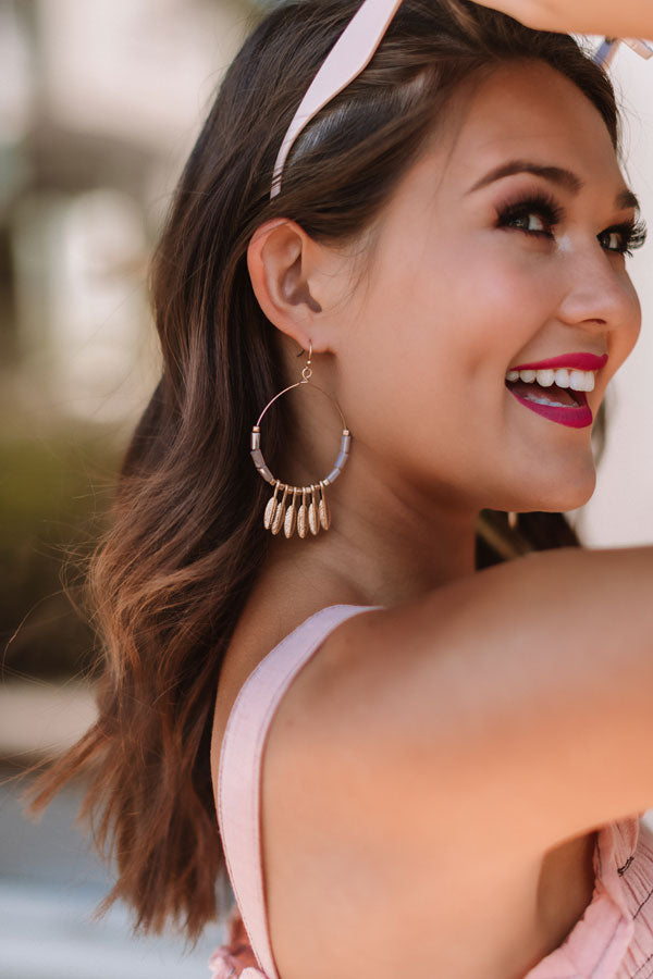 These cute earrings will sway on your ears like a Bahama breeze with their golden hoops, dusty purple beads, and dangley leaf charms!