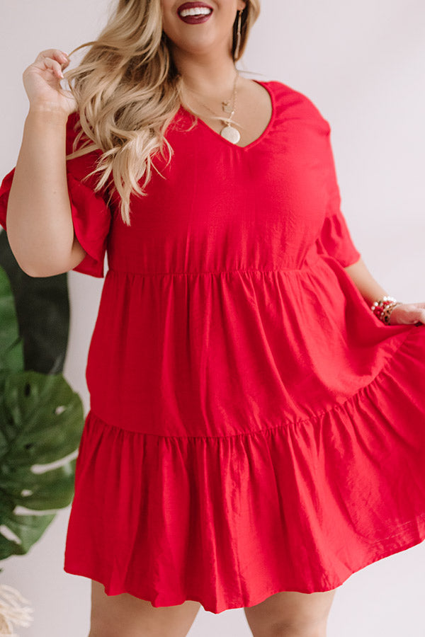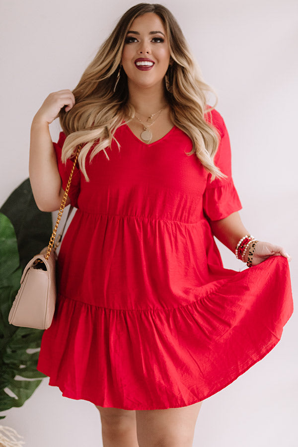 Bahama Brunch Babydoll Dress in Red Curves