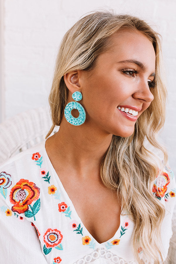 You will surely be channeling spring vibes when you accessorize with our adorable "Baja Blooms" statement earrings featuring aqua colored beaded circle studs and large dangling hoops!