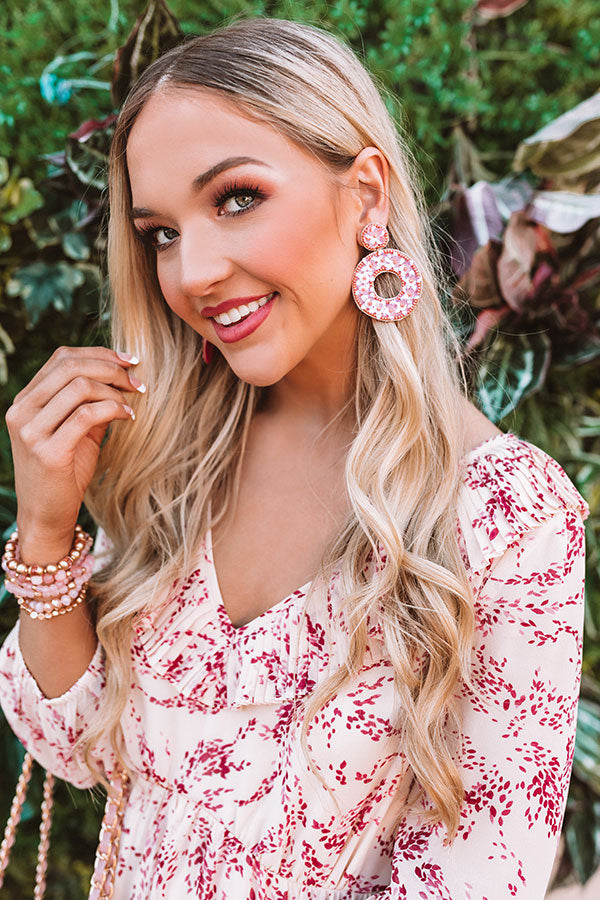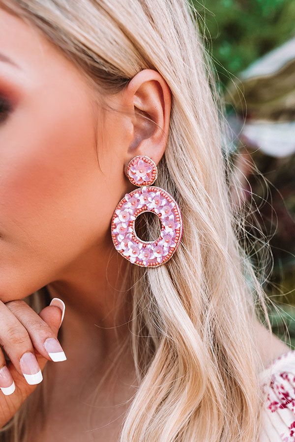 You will surely be channeling spring vibes when you accessorize with our adorable "Baja Blooms" statement earrings featuring light pink beaded circle studs and large dangling hoops!