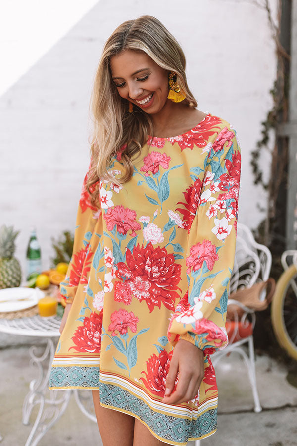 The "Baja Spritzer Shift Dress" features a scooped neckline, long sleeves ending in elastic cuffs, hidden side pockets and a relaxed fit. With a pretty floral patterned print, this dress is the perfect transitional piece!