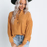 Keep it simple yet stylish in our golden honey colored 'Balcony Nights Shift Top' featuring lightweight material, a button up bodice with a v-cut neckline, long loose sleeves with wide cuffs, and a relaxed silhouette that ends in a rounded hemline!