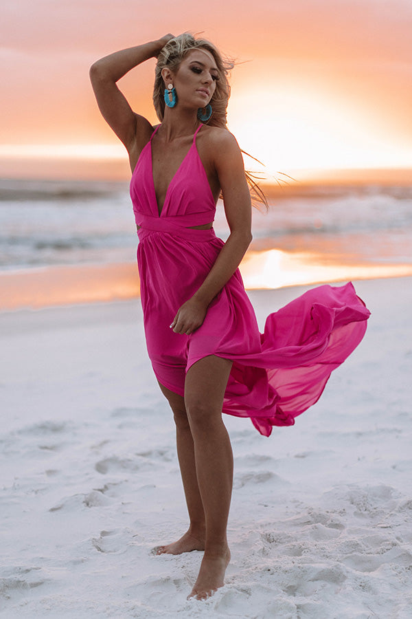 Bali Bombshell Lace Up Maxi Dress In Pink