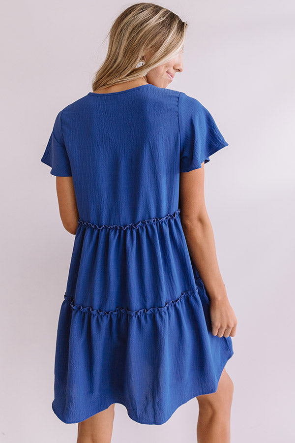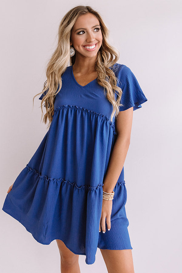 You will look like a total "Bali daydream" when you wear this adorable blue dress featuring lightweight breezy material, a v-cut neckline, short loose sleeves, ruffled exposed seam detailing, and an ultra relaxed silhouette that falls into an uneven mid-thigh length hemline! You can style this vibrant piece a variety of ways, like with a neutral platform heel and a straw tote, but you can also wear it with "The Seraphina Faux Leather Wedge in Grey" and our "All Caught Up Headband in Grey!" Measurements