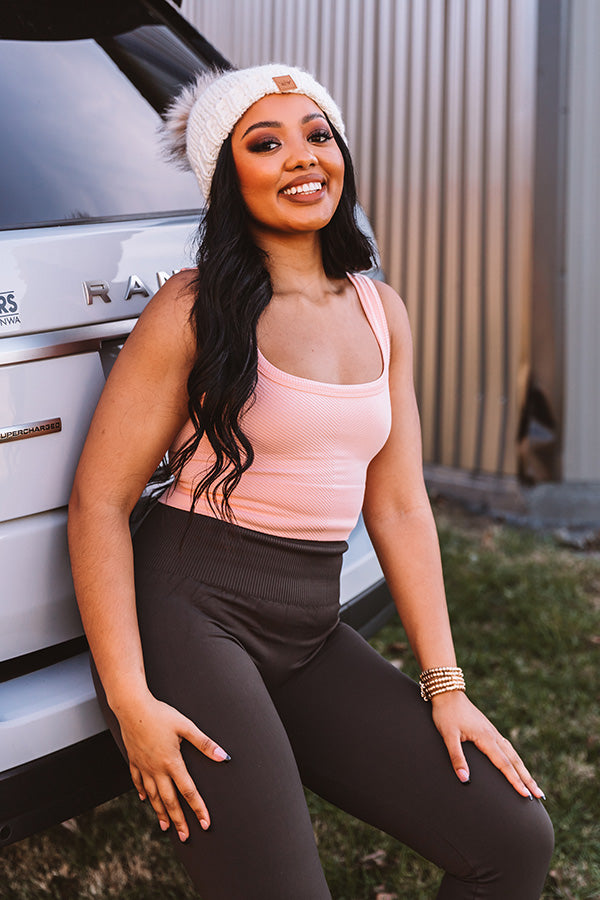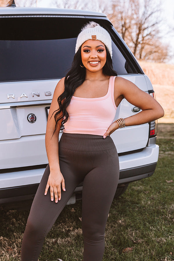 You are sure to look like a bombshell when your arrive in this adorable peach colored crop top featuring lightweight four-way stretch material with subtle ribbed texturing, a scooped neckline, skinny sleeveless shoulder straps with a low open back, and a flattering figure hugging silhouette with an elastic hemline!
