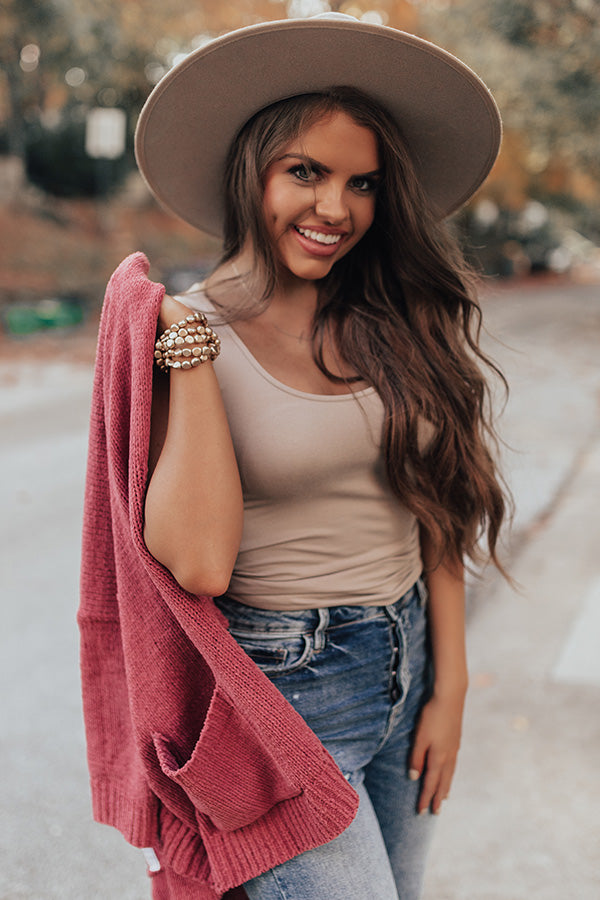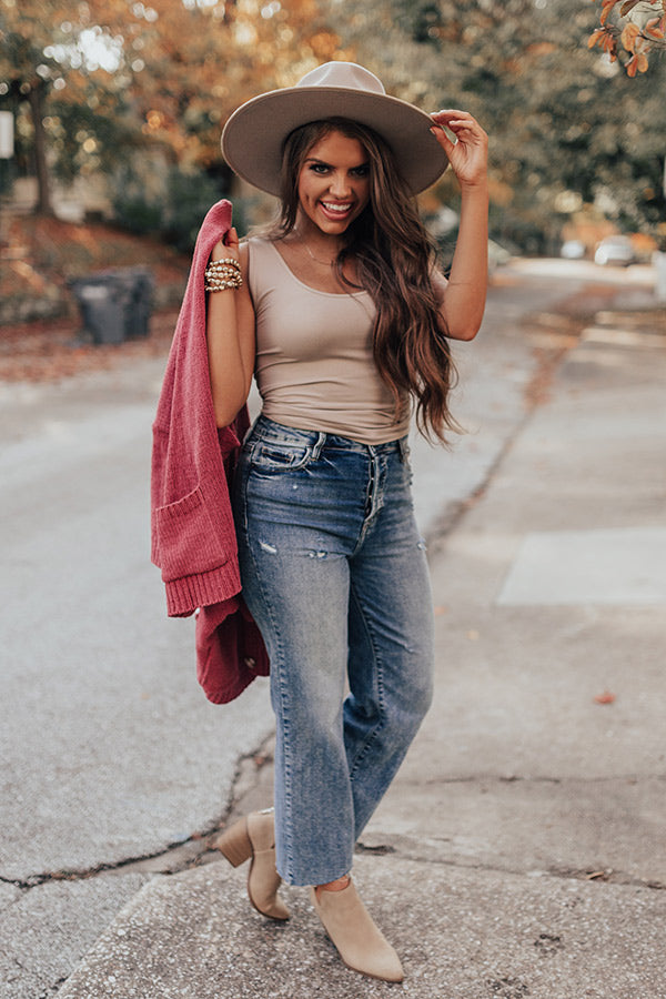 Our adorable warm taupe colored "Basic Instincts" tank is the upgrade your wardrobe basics have been begging for! It features soft and stretchy lightweight seamless material, a scooped neckline, 1-inch shoulder straps, and a form fitting silhouette that falls into a straight hemline! Measurements