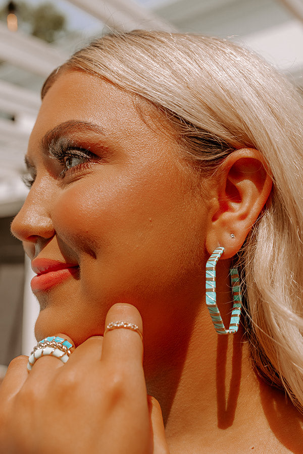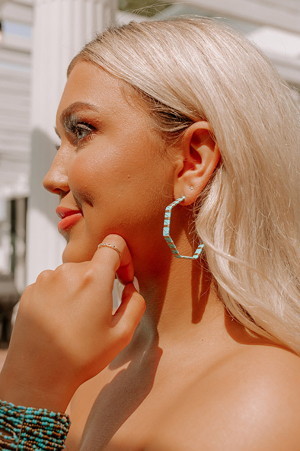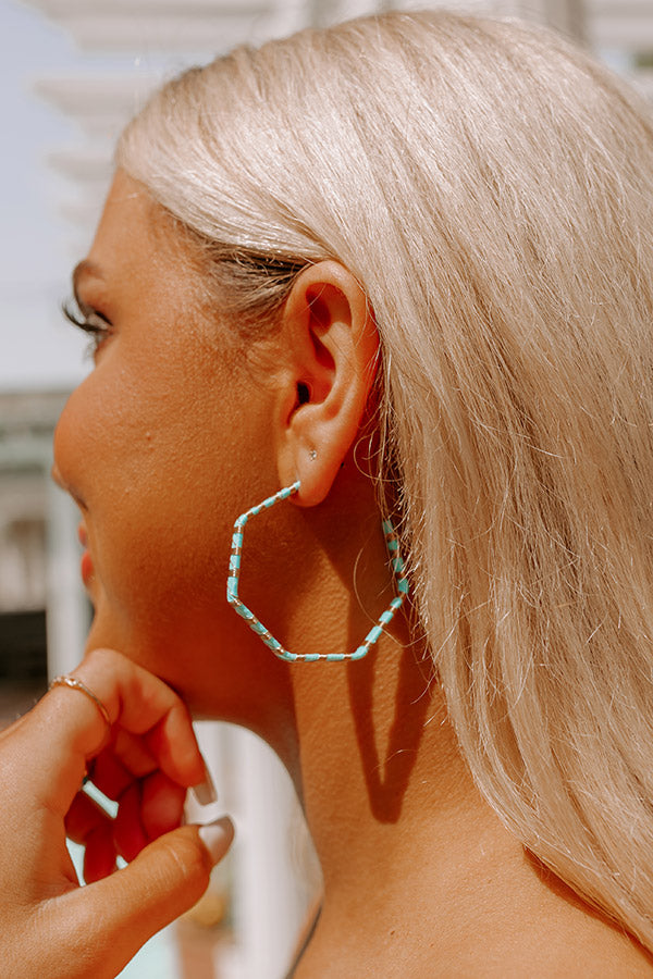 A unique twist on a classic hoop silhouette, our 'Be My Muse' earrings earrings feature aqua and gold open octagon hoops!