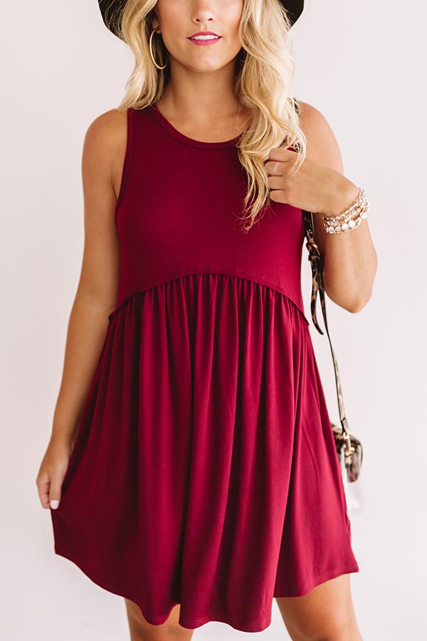 This wine babydoll dress is giving us major beach vibes with its wine color and breezy skirt! Pair this piece with a leopard crossbody and wedge for an upscale evening outfit or with an adorable hair accessory like our "All Caught Up Headband in Grey" and our "Jess Faux Suede Heel in Grey" for a feminine cabana party outfit! Measurements