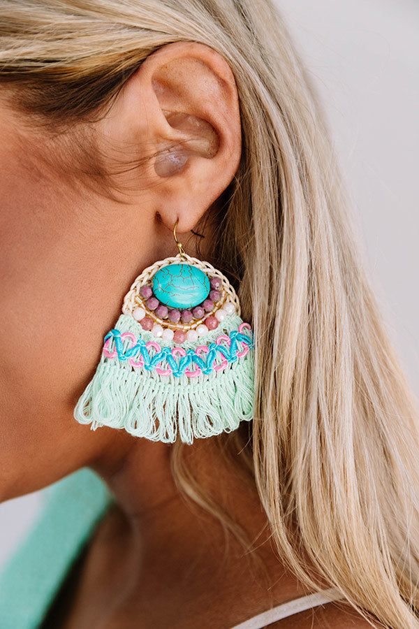 You will be vacay ready when you accessorize with our adorable "Beach Villa" statement earrings featuring woven mint detailing with pink and blue beaded accents!
