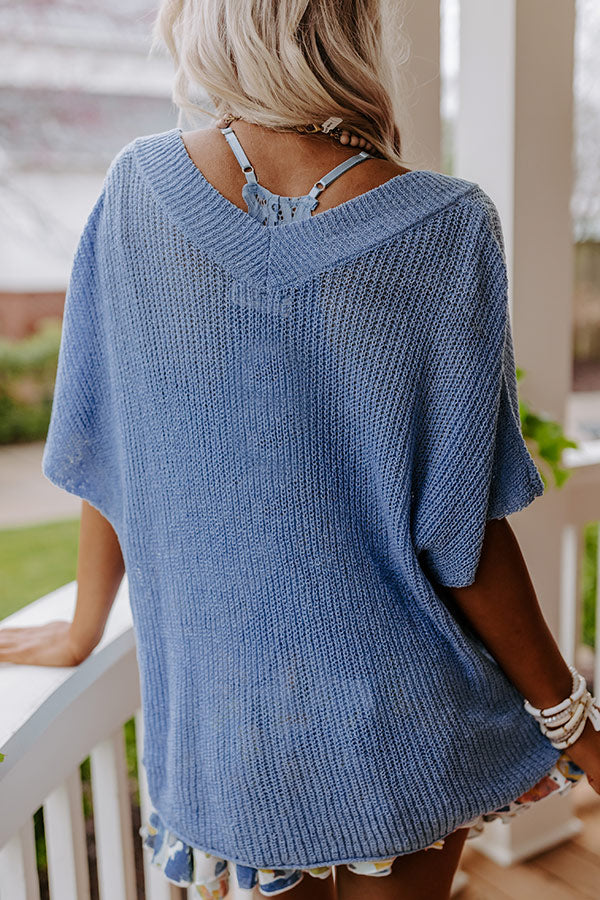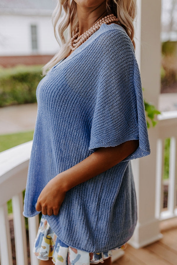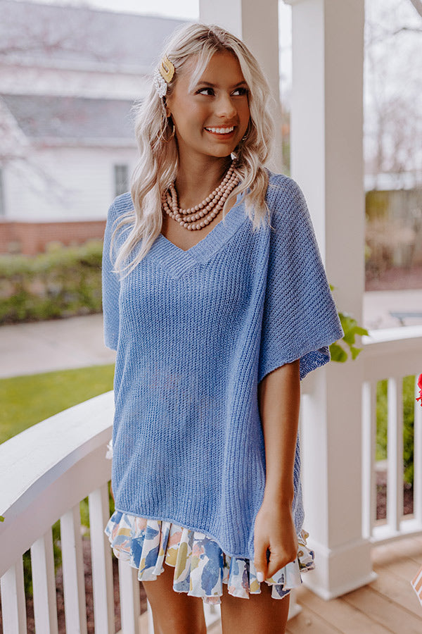 We have no doubt you will look beautiful in this airy blue colored top featuring lightweight knit material, a wide v-cut neckline, loose 3/4-length sleeves, and a slouched silhouette that falls into a straight tunic-length hemline! on products