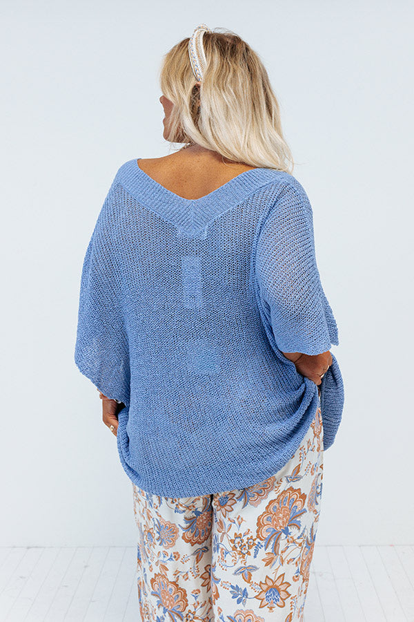 Beautiful Beach Waves Knit Top In Airy Blue Curves