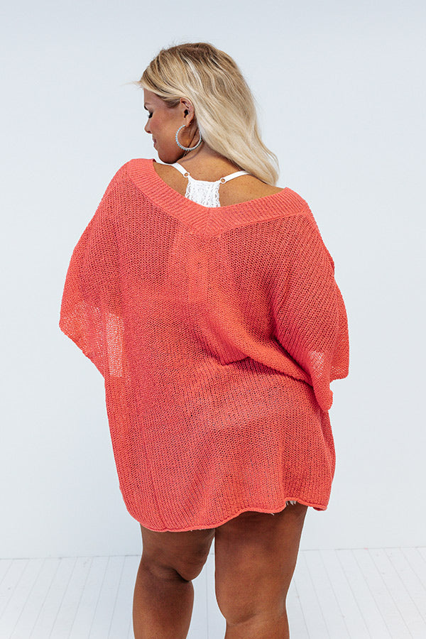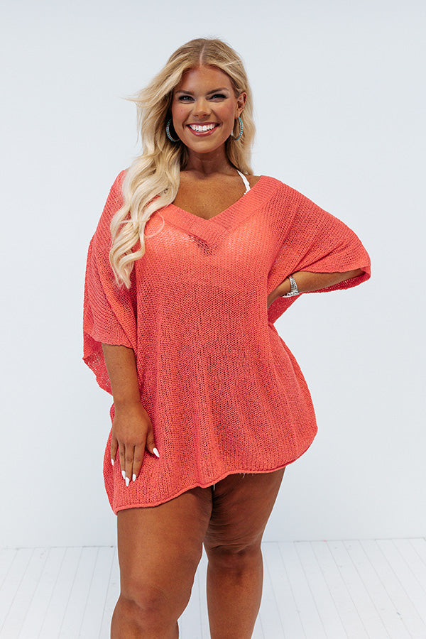 We have no doubt you will look beautiful in this coral colored plus size top featuring lightweight knit material, a wide v-cut neckline, loose 3/4-length sleeves, and a slouched silhouette that falls into a straight tunic-length hemline! on products Measurements